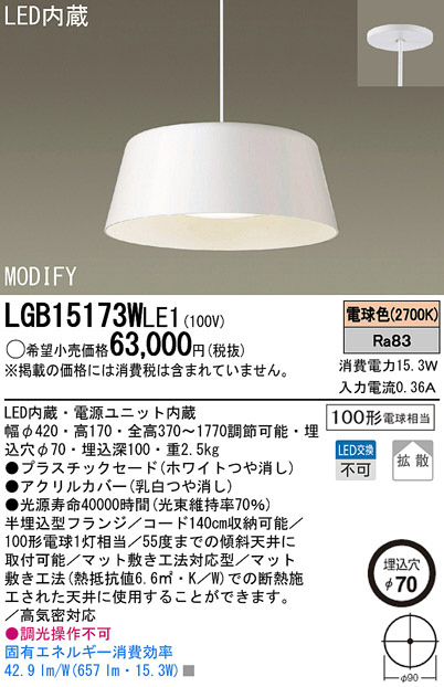 Panasonic LED ¥Ú¥ó¥À¥ó¥È¥é¥¤¥È LGB15173WLE1
