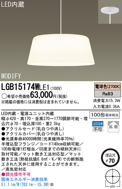 Panasonic LED ¥Ú¥ó¥À¥ó¥È¥é¥¤¥È LGB15174WLE1