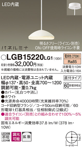 Panasonic LED ¥Ú¥ó¥À¥ó¥È¥é¥¤¥È LGB15220LG1