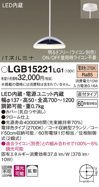 Panasonic LED ¥Ú¥ó¥À¥ó¥È¥é¥¤¥È LGB15221LG1