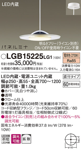 Panasonic LED ¥Ú¥ó¥À¥ó¥È¥é¥¤¥È LGB15225LG1