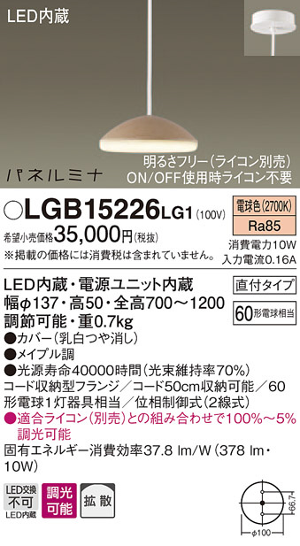Panasonic LED ¥Ú¥ó¥À¥ó¥È¥é¥¤¥È LGB15226LG1