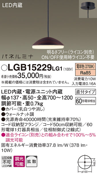 Panasonic LED ¥Ú¥ó¥À¥ó¥È¥é¥¤¥È LGB15229LG1