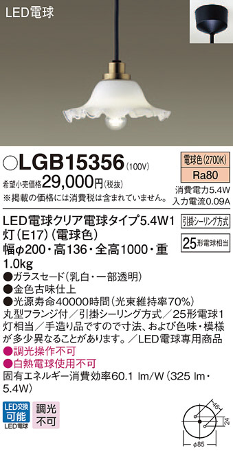 Panasonic LED ¥Ú¥ó¥À¥ó¥È¥é¥¤¥È LGB15356