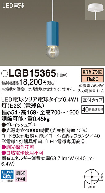 Panasonic LED ¥Ú¥ó¥À¥ó¥È¥é¥¤¥È LGB15365