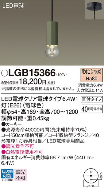 Panasonic LED ¥Ú¥ó¥À¥ó¥È¥é¥¤¥È LGB15366