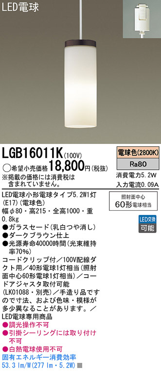 Panasonic LED ¥Ú¥ó¥À¥ó¥È¥é¥¤¥È LGB16011K