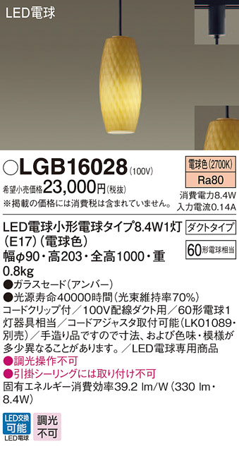 Panasonic LED ¥Ú¥ó¥À¥ó¥È¥é¥¤¥È LGB16028