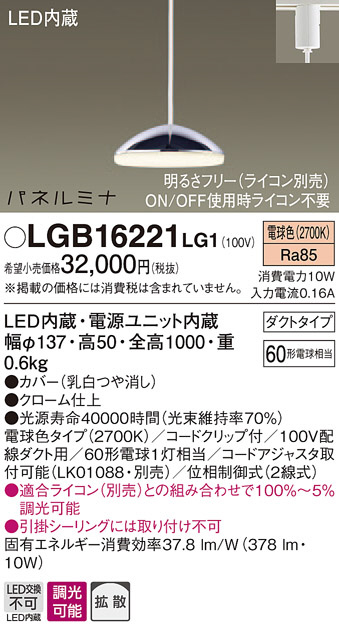 Panasonic LED ¥Ú¥ó¥À¥ó¥È¥é¥¤¥È LGB16221LG1