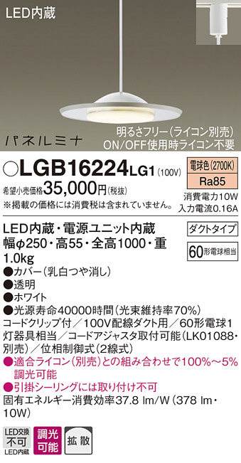 Panasonic LED ¥Ú¥ó¥À¥ó¥È¥é¥¤¥È LGB16224LG1