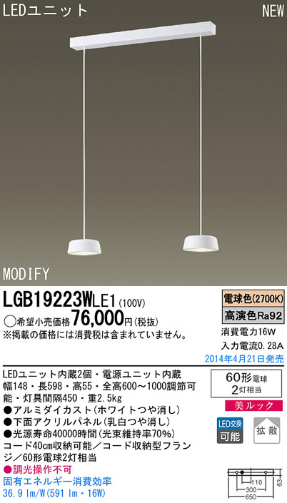 Panasonic LED¥Ú¥ó¥À¥ó¥È¥é¥¤¥È LGB19223WLE1