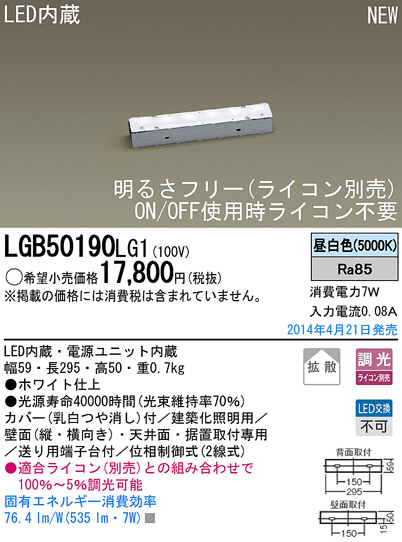 Panasonic LED¥Ö¥é¥±¥Ã¥È LGB50190LG1