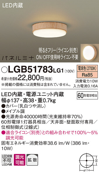 Panasonic ¥·¡¼¥ê¥ó¥°¥é¥¤¥È LGB51783LG1