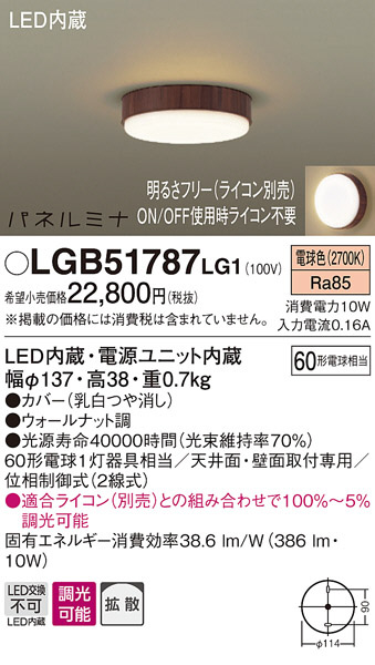 Panasonic ¥·¡¼¥ê¥ó¥°¥é¥¤¥È LGB51787LG1