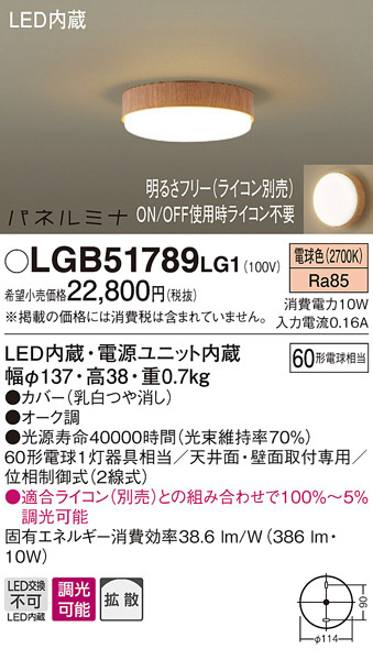 Panasonic ¥·¡¼¥ê¥ó¥°¥é¥¤¥È LGB51789LG1