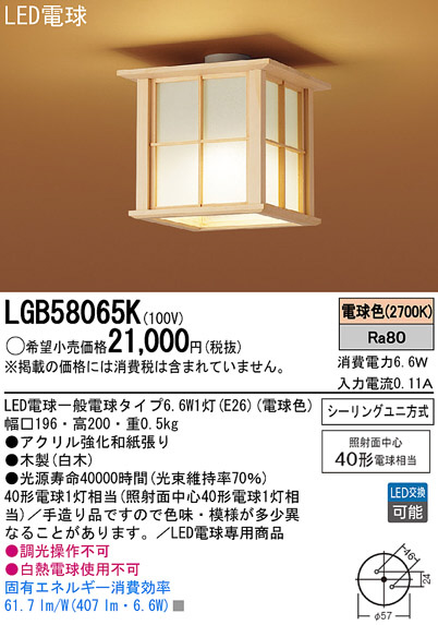 Panasonic LED ¥·¡¼¥ê¥ó¥°¥é¥¤¥È LGB58065K