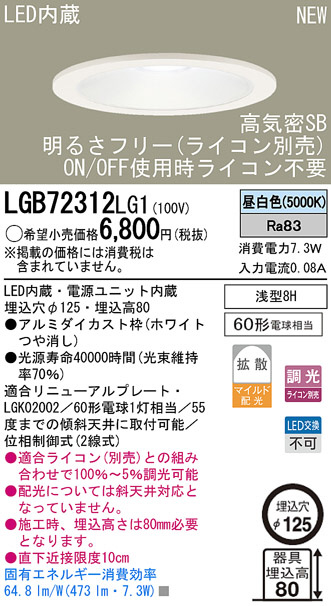 Panasonic LED¥À¥¦¥ó¥é¥¤¥È LGB72312LG1