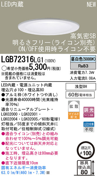 Panasonic LED¥À¥¦¥ó¥é¥¤¥È LGB72316LG1
