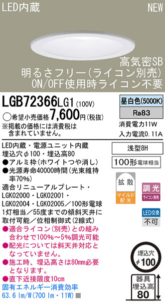 Panasonic LED¥À¥¦¥ó¥é¥¤¥È LGB72366LG1