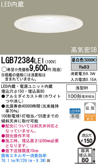 Panasonic LED ¥À¥¦¥ó¥é¥¤¥È LGB72384LE1