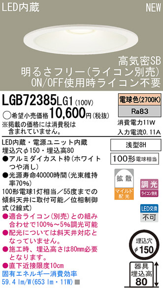 Panasonic LED¥À¥¦¥ó¥é¥¤¥È LGB72385LG1