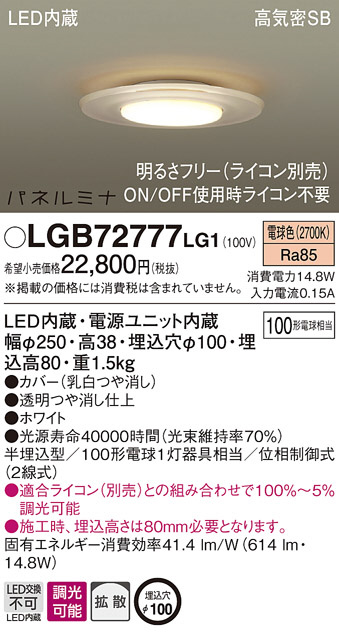 Panasonic ¥·¡¼¥ê¥ó¥°¥é¥¤¥È LGB72777LG1