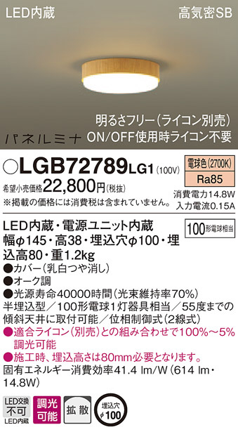 Panasonic ¥·¡¼¥ê¥ó¥°¥é¥¤¥È LGB72789LG1