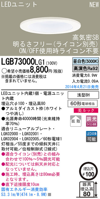 Panasonic LED¥À¥¦¥ó¥é¥¤¥È LGB73000LG1