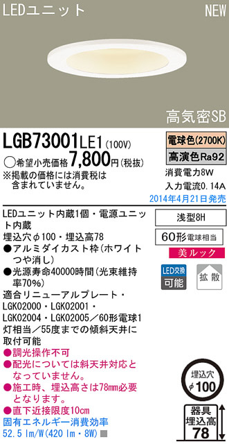 Panasonic LED¥À¥¦¥ó¥é¥¤¥È LGB73001LE1
