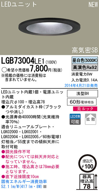 Panasonic LED¥À¥¦¥ó¥é¥¤¥È LGB73004LE1