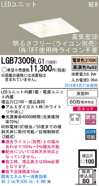 Panasonic LED¥À¥¦¥ó¥é¥¤¥È LGB73009LG1