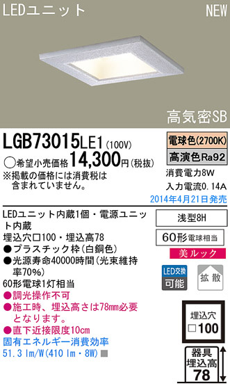 Panasonic LED¥À¥¦¥ó¥é¥¤¥È LGB73015LE1