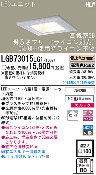 Panasonic LED¥À¥¦¥ó¥é¥¤¥È LGB73015LG1