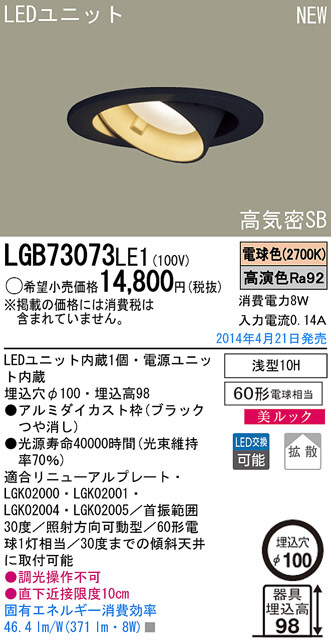 Panasonic LED¥À¥¦¥ó¥é¥¤¥È LGB73073LE1