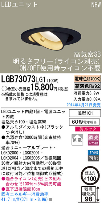 Panasonic LED¥À¥¦¥ó¥é¥¤¥È LGB73073LG1