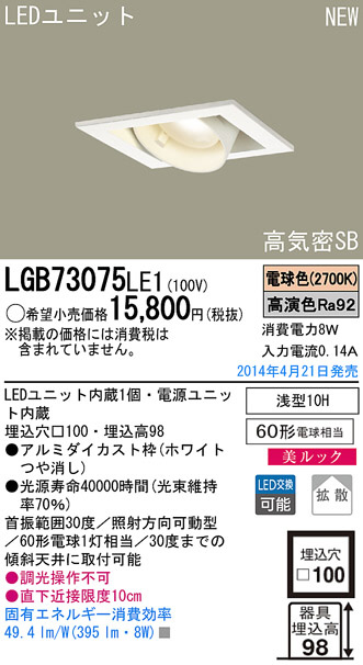 Panasonic LED¥À¥¦¥ó¥é¥¤¥È LGB73075LE1