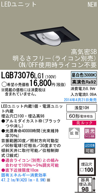 Panasonic LED¥À¥¦¥ó¥é¥¤¥È LGB73076LG1