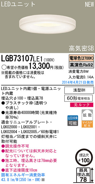 Panasonic LED¥À¥¦¥ó¥é¥¤¥È LGB73107LE1