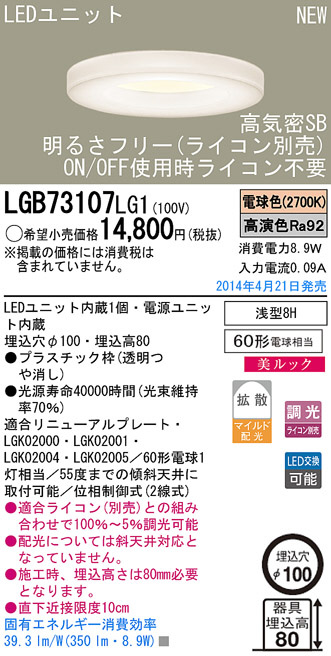Panasonic LED¥À¥¦¥ó¥é¥¤¥È LGB73107LG1