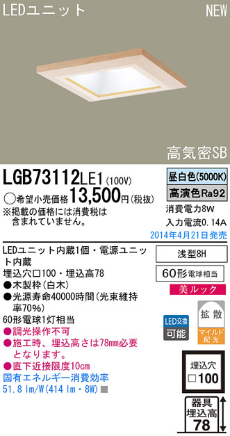 Panasonic LED¥À¥¦¥ó¥é¥¤¥È LGB73112LE1