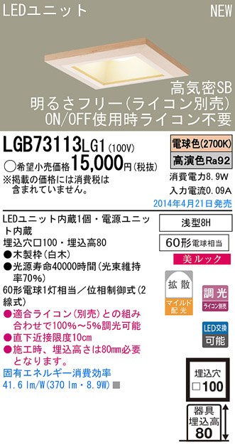 Panasonic LED¥À¥¦¥ó¥é¥¤¥È LGB73113LG1