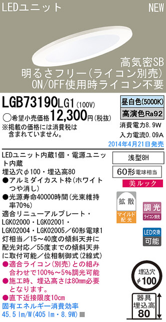 Panasonic LED¥À¥¦¥ó¥é¥¤¥È LGB73190LG1