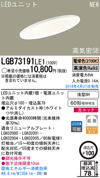 Panasonic LED¥À¥¦¥ó¥é¥¤¥È LGB73191LE1