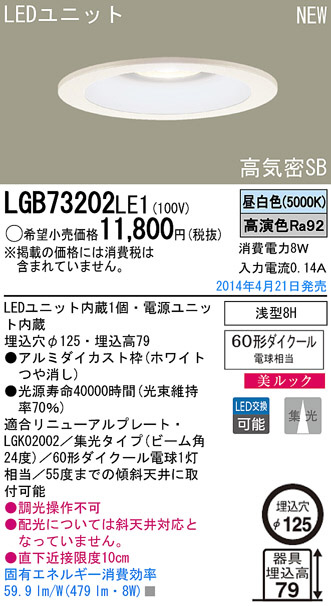 Panasonic LED¥À¥¦¥ó¥é¥¤¥È LGB73202LE1