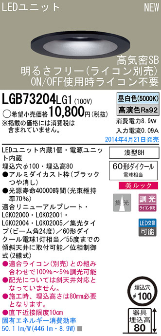 Panasonic LED¥À¥¦¥ó¥é¥¤¥È LGB73204LG1