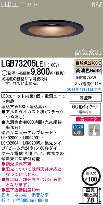 Panasonic LED¥À¥¦¥ó¥é¥¤¥È LGB73205LE1