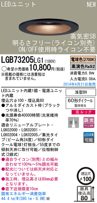 Panasonic LED¥À¥¦¥ó¥é¥¤¥È LGB73205LG1