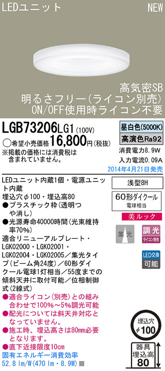 Panasonic LED¥À¥¦¥ó¥é¥¤¥È LGB73206LG1