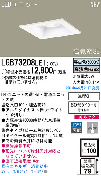 Panasonic LED¥À¥¦¥ó¥é¥¤¥È LGB73208LE1