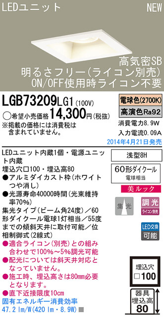 Panasonic LED¥À¥¦¥ó¥é¥¤¥È LGB73209LG1